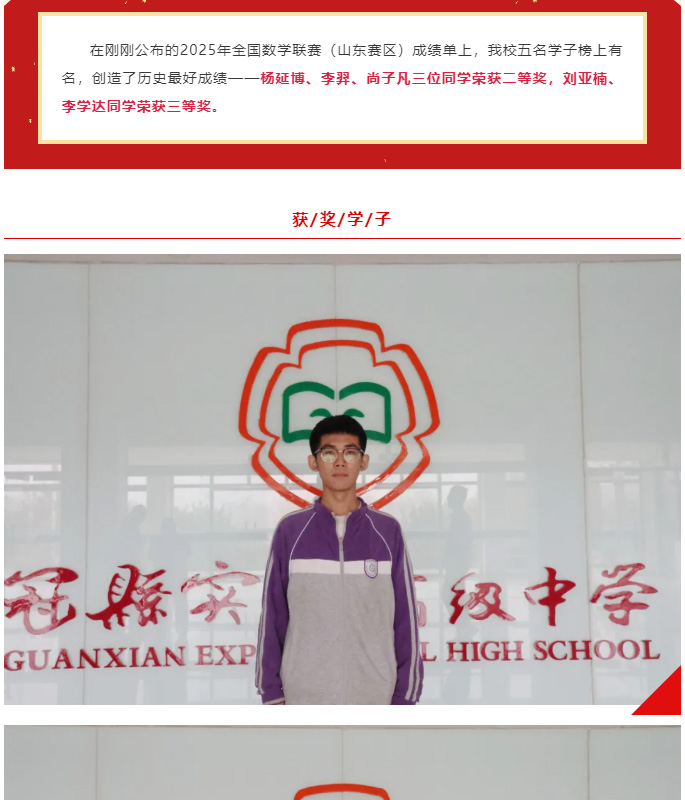 再传捷报!全国数学联赛实验高中五人获奖!