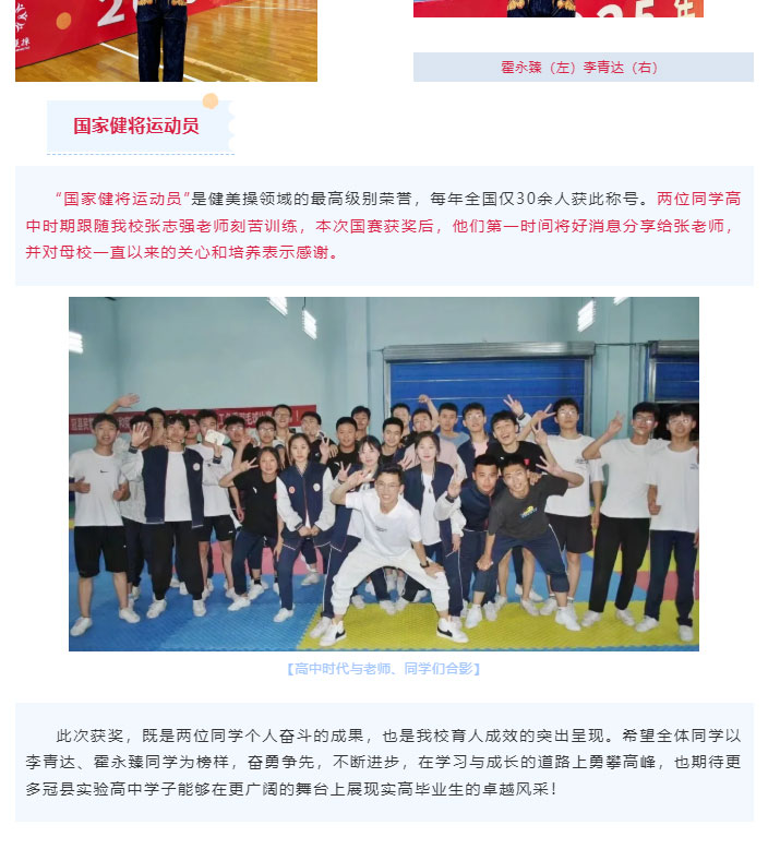 冠县实验高中两名毕业生荣获“运动健将”称号