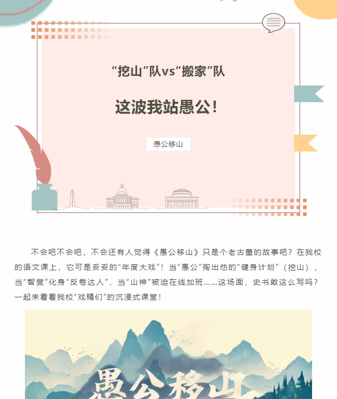 【实高学校初中部】“挖山”队VS“搬家”队,这波我站愚公!——七年级语文课“整活”现场