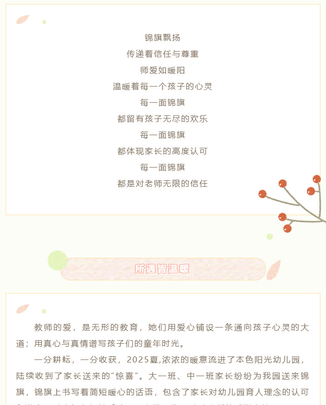教育有温度 锦旗载深情--本色阳光2025夏季再获锦旗