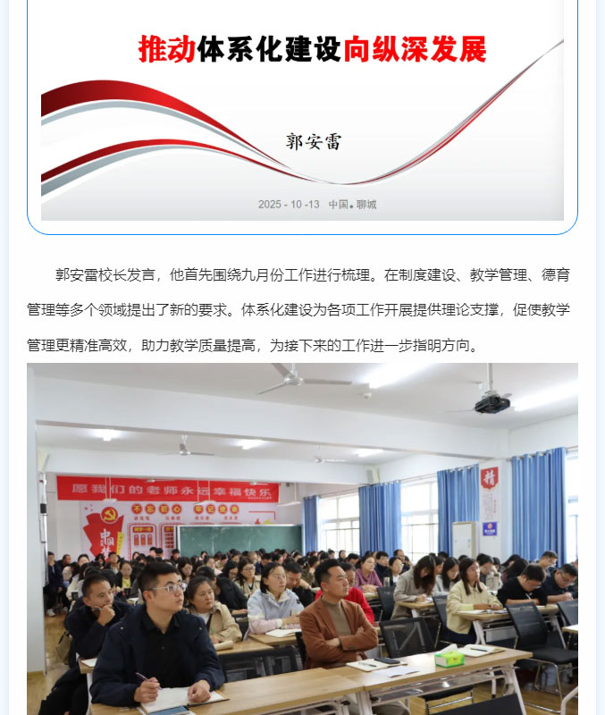 推动体系化建设向纵深发展 | 聊城市华育高级中学全体教职工会议