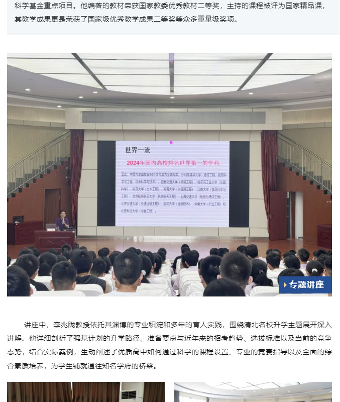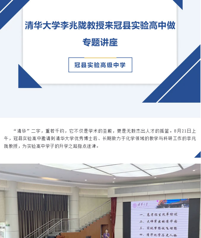清华大学李兆陇教授来冠县实验高中做专题讲座