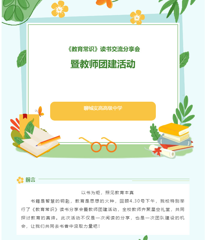 【聊城实高】继续做有温度的教育者,也做幸福的读书人!